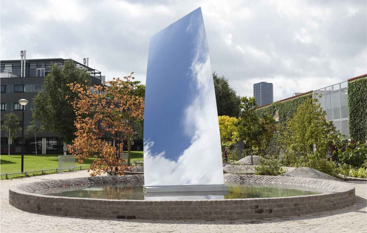 Artist Lee Ufan, stainless steel 6M rolled plate, super clear mirror polished both sides. Photo HGMP.